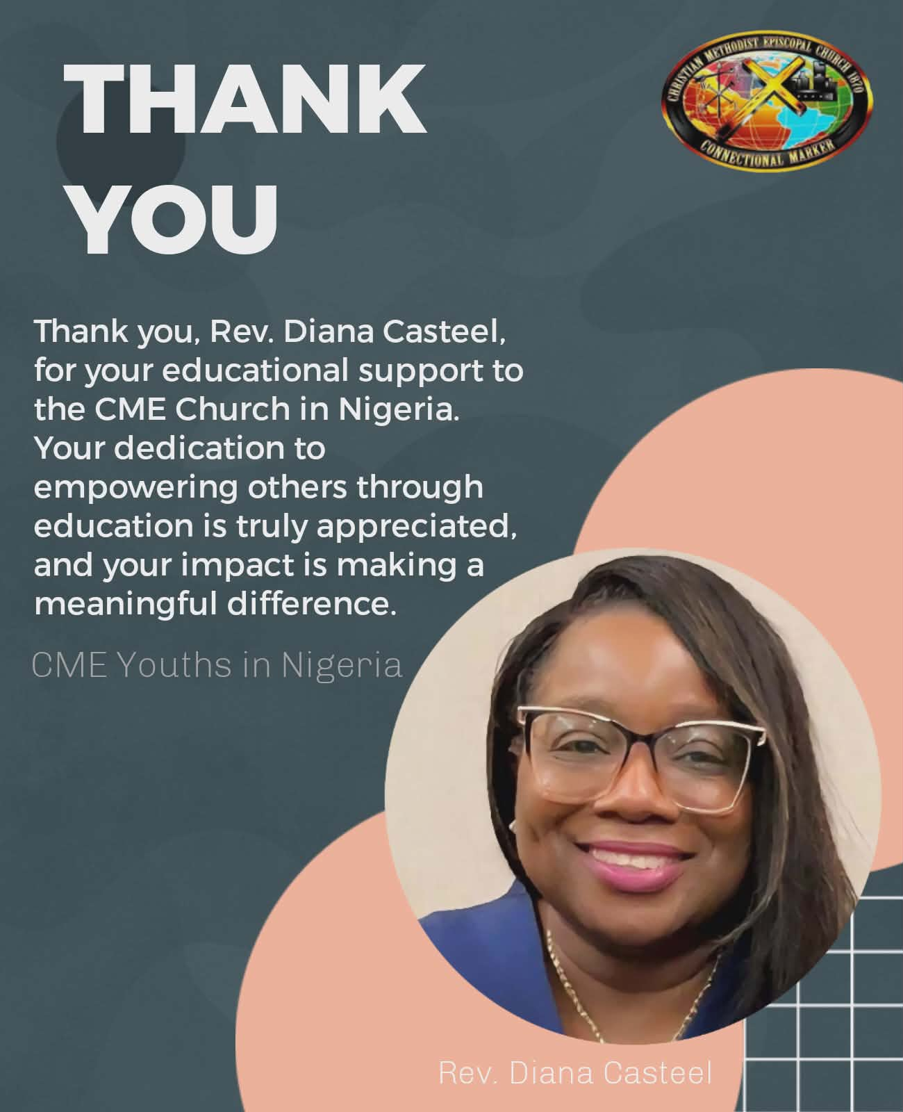 On Saturday, February 14, during the Eastern, Southeastern, and Calabar Region Annual Conference of the 10th Episcopal District, where the Rt. Reverend Rickey D. Helton is Presiding Bishop; a monetary donation was given to the Mission Supervisor of Nigeria from Reverend Diana Casteel, Candidate for Bishop 2026. The funds donated will go towards educational needs for the youth, young adults, children, ministers, and pastors.